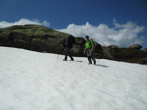 17H05 – Chegada ao Cântaro Magro (1929m), local de rara beleza e onde nos deliciámos a refrescar nas águas deste lago. A partir daqui e segundo os nossos cálculos já seria perto do local de acampamento mas alguns kms à frente nos apercebemos que estávamos na direcção errada e bem longe do destino. Já só com água suficiente para o 2º dia e também já com bastante cansaço acumulado resolvemos dirigirmo-nos até à torre para nos abastecermos de água e aí também descansarmos e avaliar a localização.