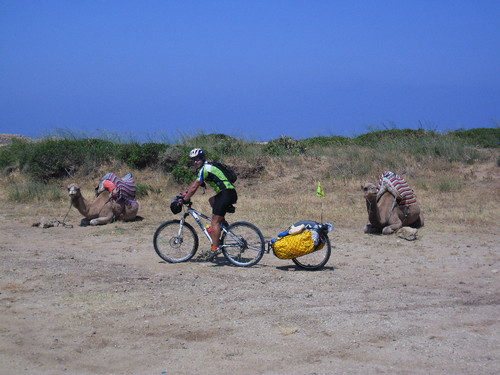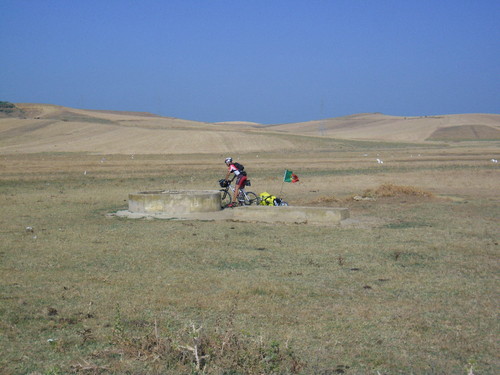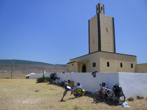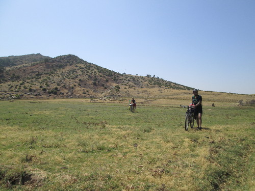12H33 – Com uma temperatura adversa (39graus) e depois de alguns kms perdidos do trilho correcto e já com 2H39 de percurso encontrámos uma única sombra onde aproveitámos para repousar e comer alguma coisa.