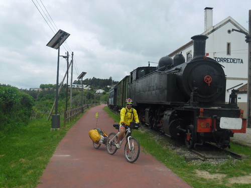 9H50 - V.F.Xira 121 km - Aqui foi necesário inverter o "jogo" entre bicicleta e ciclista, para transpor a passagem elevatória do caminho de ferro foi necessário carregar as Bikes