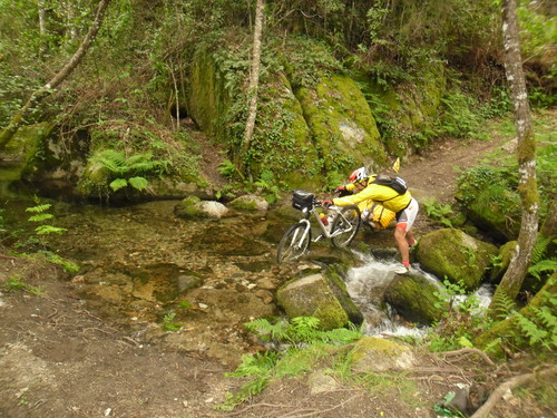 16H40 Já perto de Valença e com uma etapa bastante dura e de grande desnível ao longo de muitos kms em calçada Romana tivemos a primeira avaria, a bike do Ruben partiu a corrente. Rápidamente a reparámos e voltámos ao