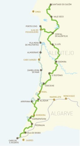 A Rota Vicentina, Caminho Histórico no Sw de Portugal liga a cidade de Santiago do Cacém e o Cabo de S. Vicente.