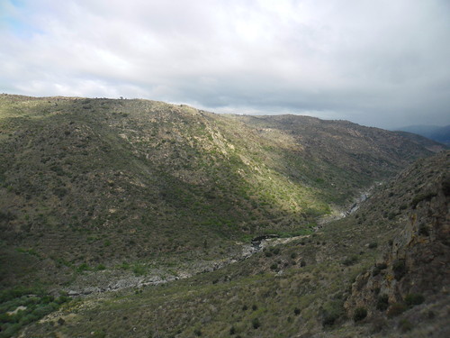 Ainda sem saber ao certo qual a direcção a tomar abandonei a Rota préviamente definida. Decidi dirigir-me para norte de modo a subir a encosta desta povoação e entrar nos trilhos. Já bem no cimo da encosta e de deixar o asfalto deparei-me com alguns trilhos que percorriam as falesias e assim continuei a progressão para norte.