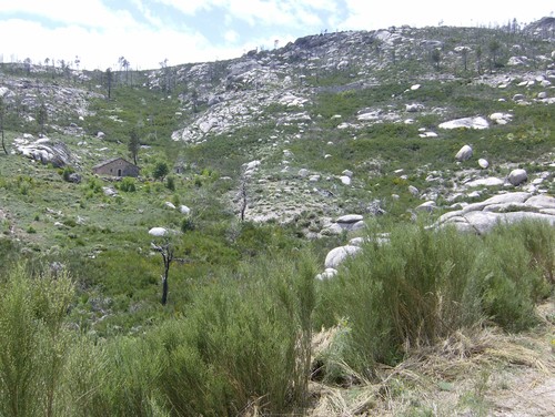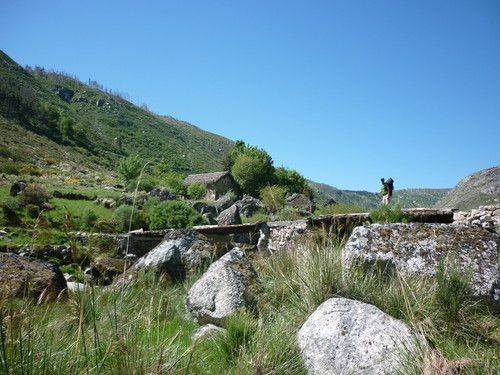 14H15 – Com 4H23 de percurso e com um calor quase insuportável chegámos a um grande vale onde encontrámos 2 pastores com um rebanho de cabras e nos convidaram para nos abrigarmos à sombra das rochas e nos indicaram que seriam mais uma longas horas até ao nosso destino, o Covão da Ametade.